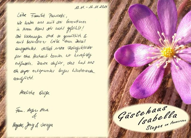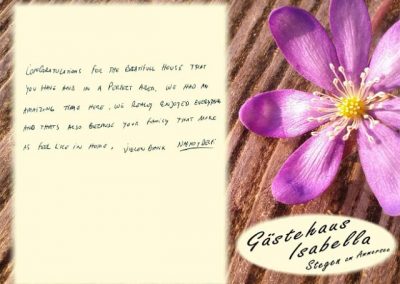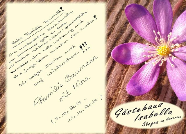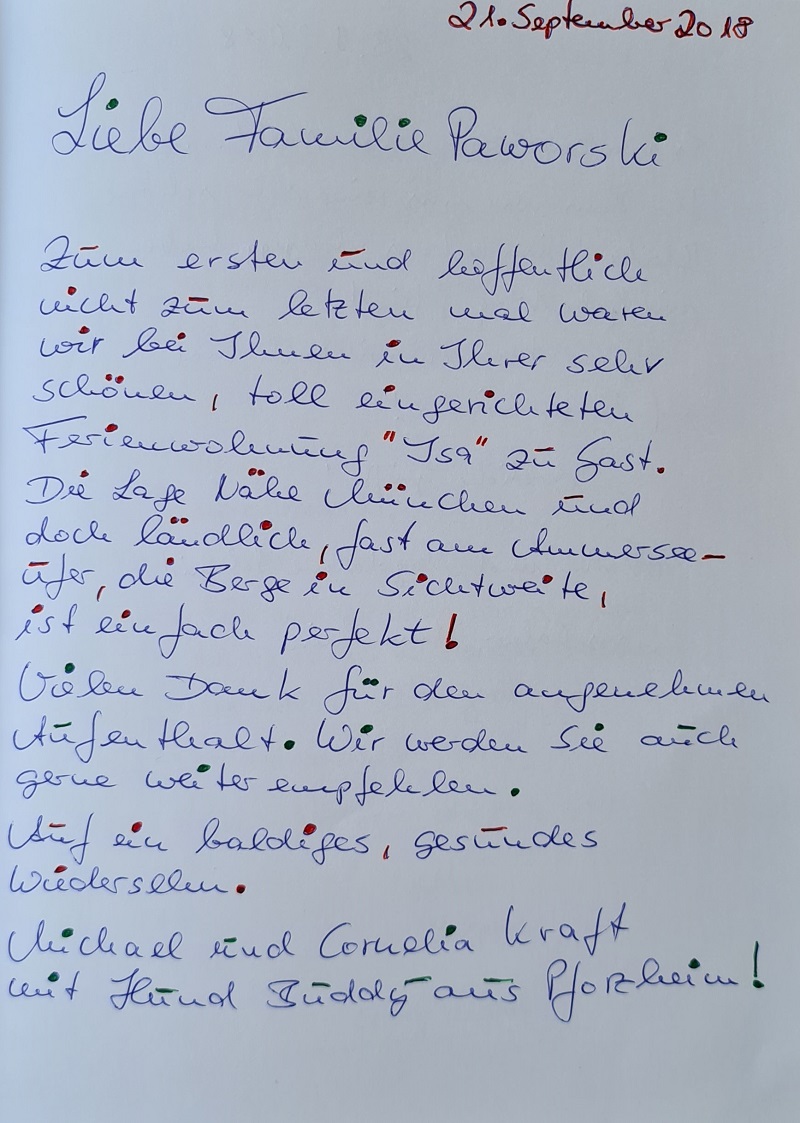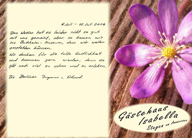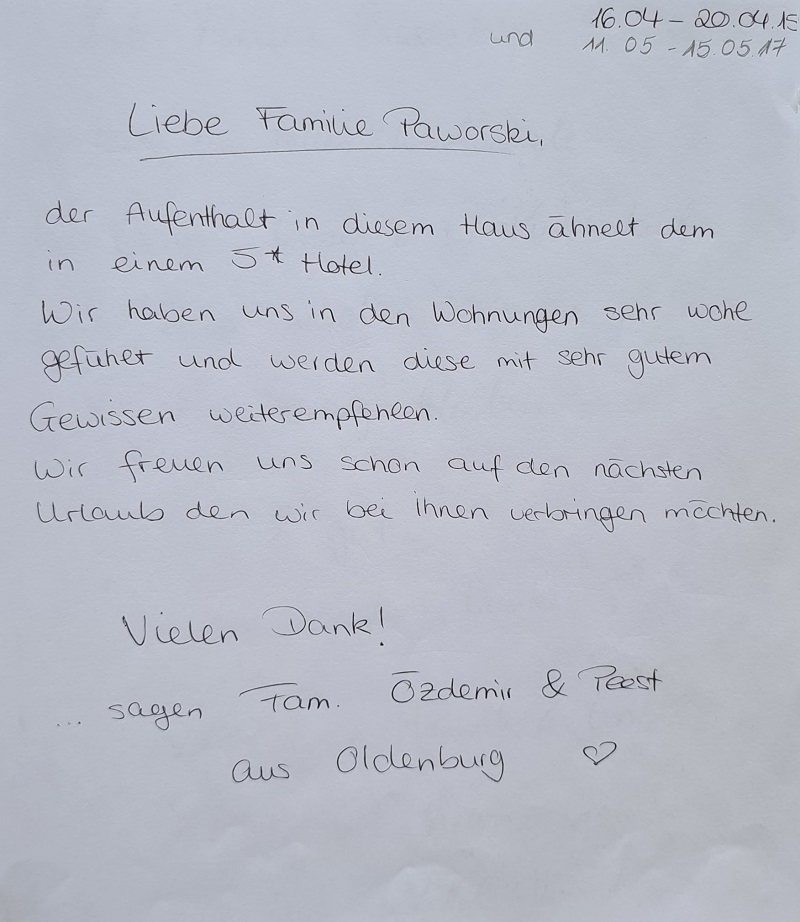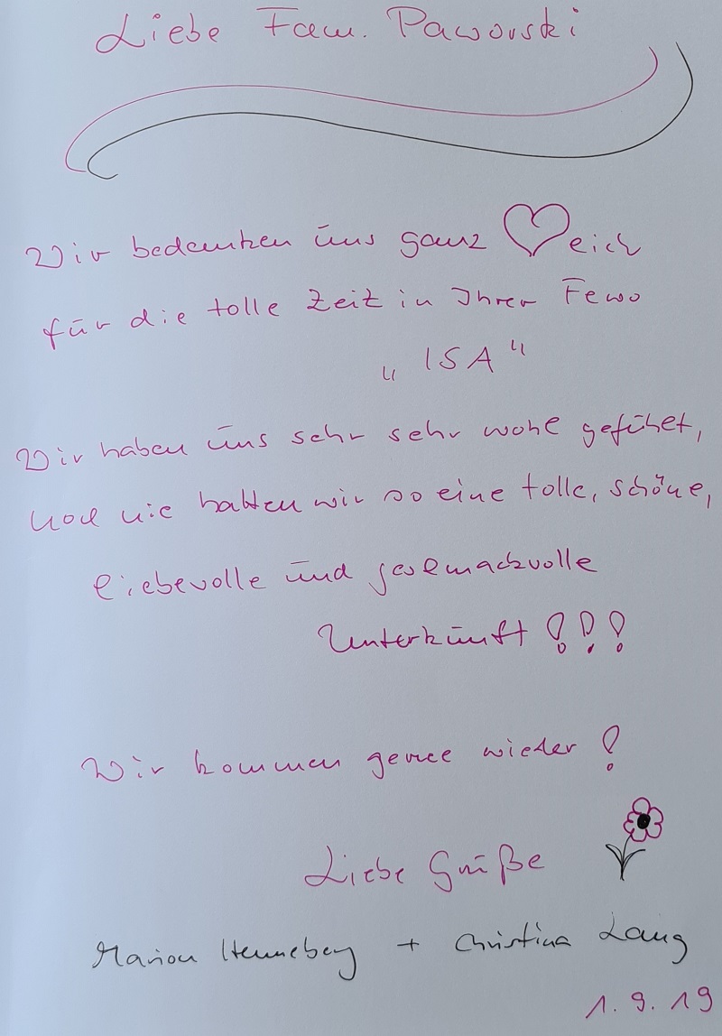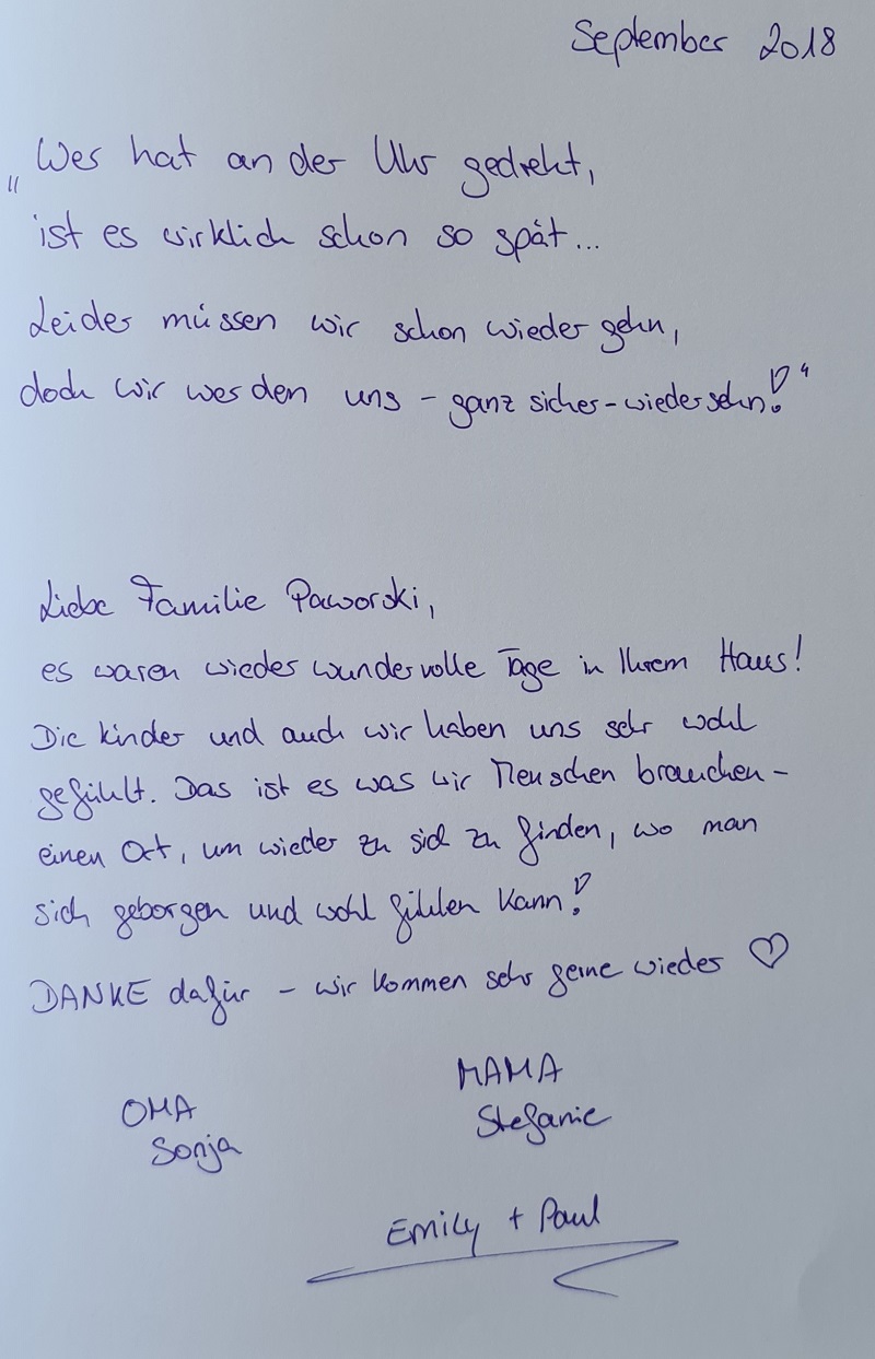 Vielen Dank an unsere lieben Gäste und Ihren sehr netten, kreativen und lobenden Gästebucheinträgen.