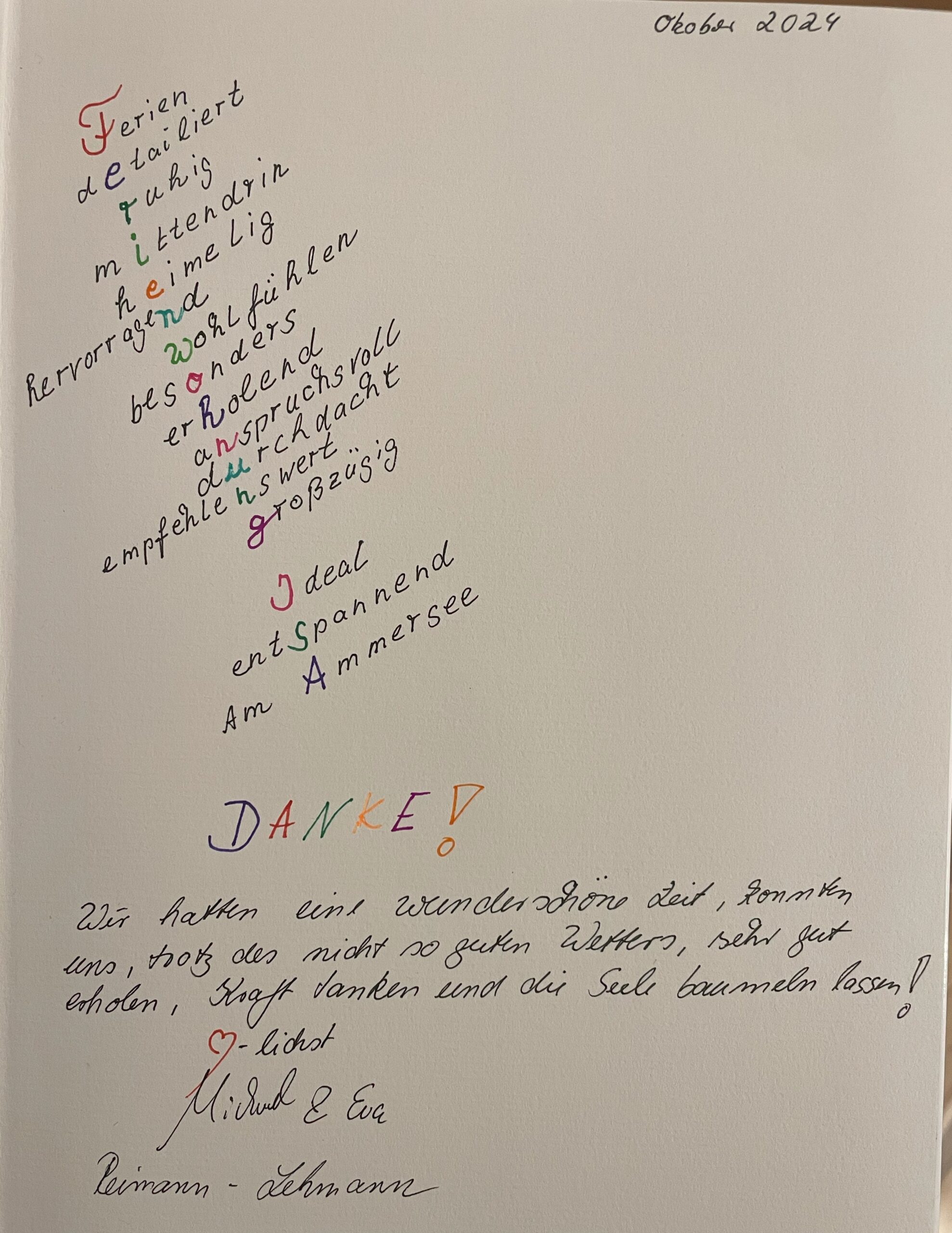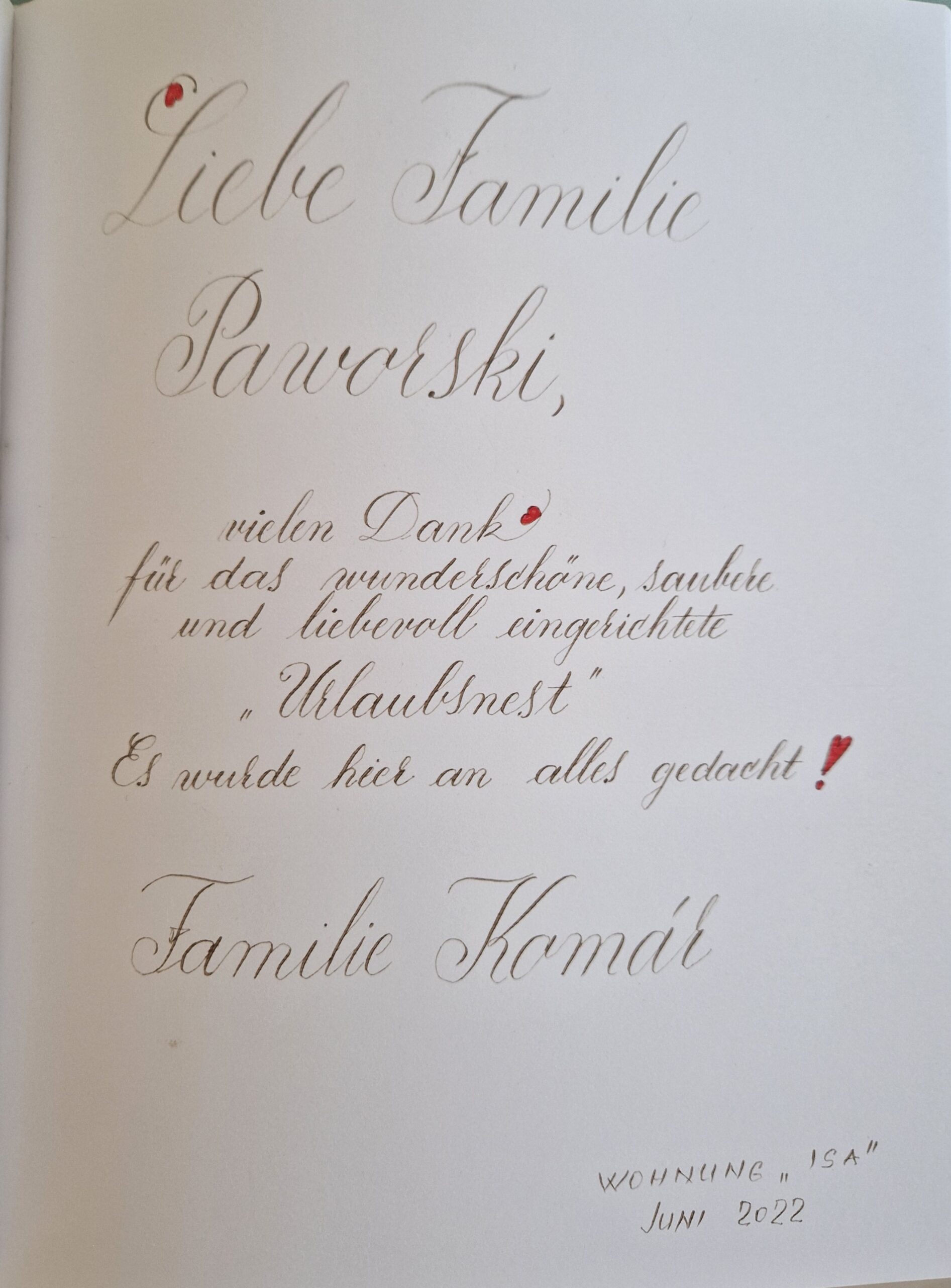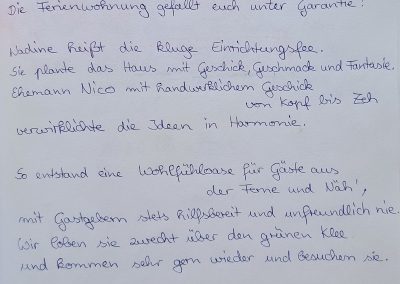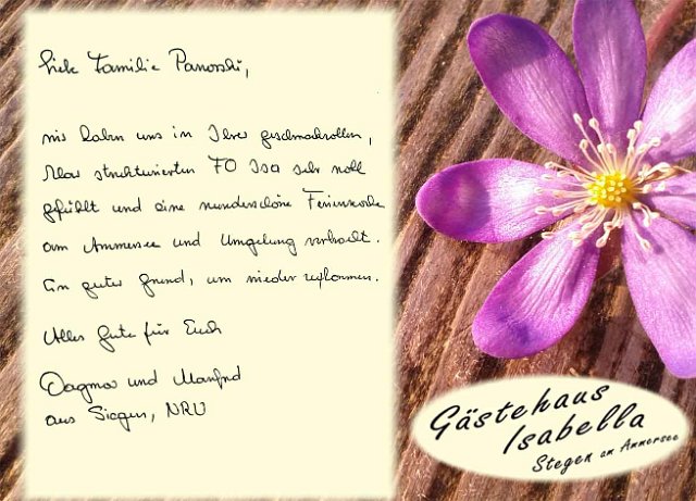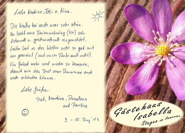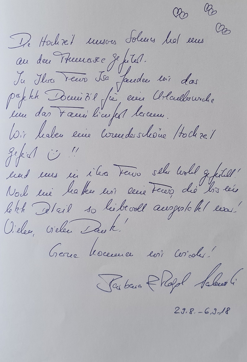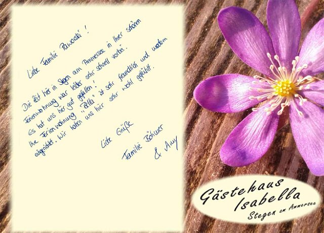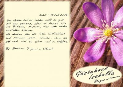Vielen Dank an unsere lieben Gäste und Ihren sehr netten, kreativen und lobenden Gästebucheinträgen.